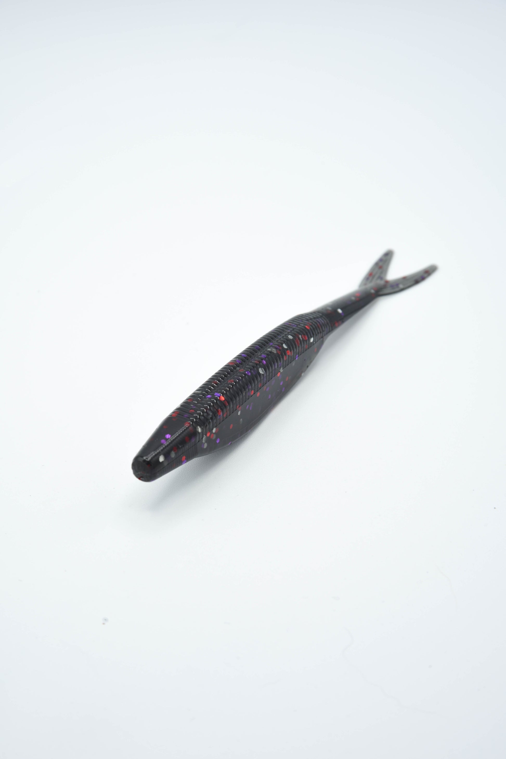 The 5" Jerk is a classic fluke-style soft bait designed for sharp, erratic, darting action. Measuring 5 inches long with a .38" body width and .6" mid-body thickness, it’s built for precision and performance. A deep belly hook slot boosts hookup ratios with EWG-style hooks, while the centered back divot helps you perfectly align and hide your hook point. Its long, thin, forked tail gives it that irresistible glide and twitch anglers love.