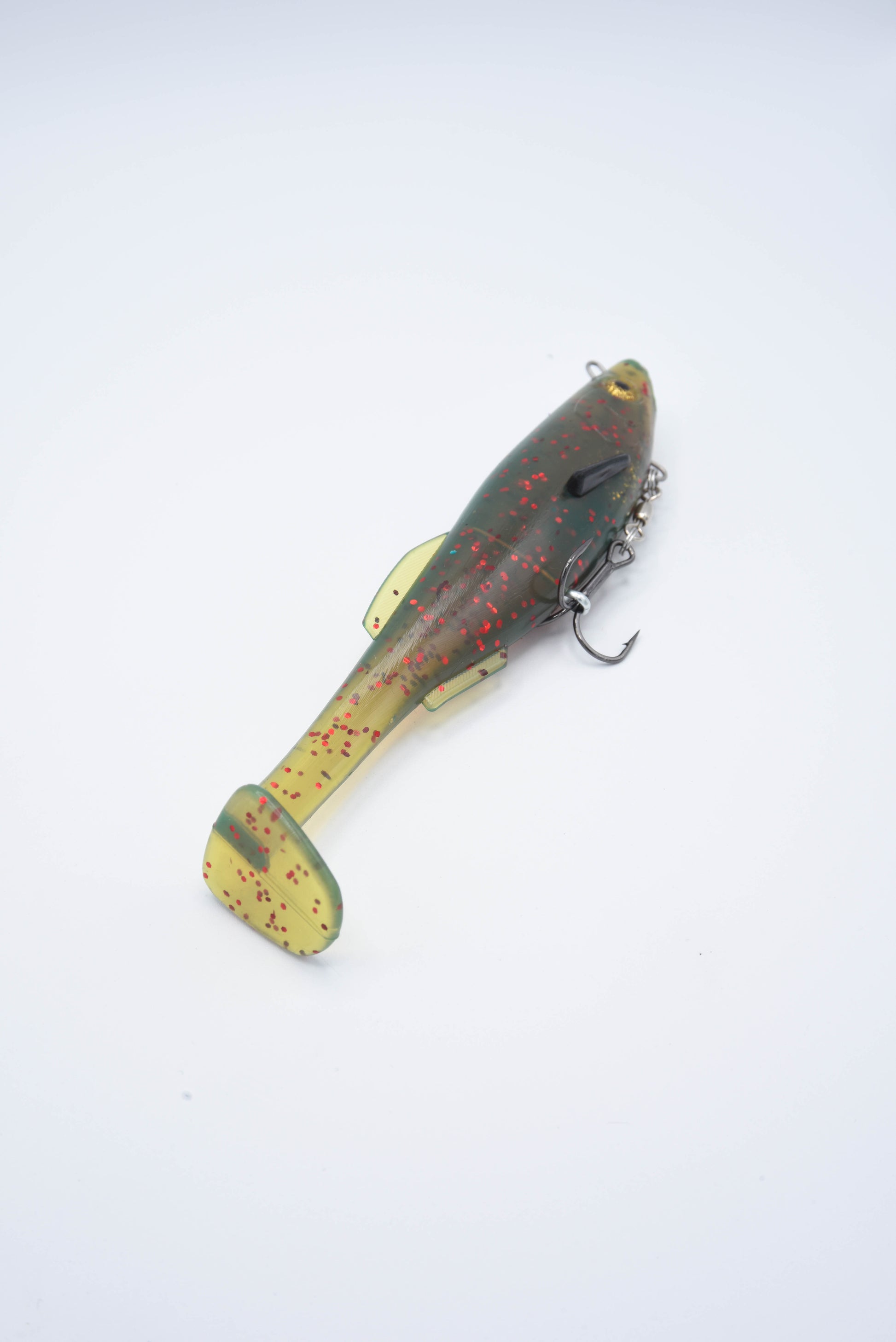 The Cutt Throat Shad is built to get big bites. Designed with a wire-through harness and belly-rigged treble setup, this bait delivers rock-solid hooksets without sacrificing lifelike action. Its wide thumping tail kicks hard during slow retrieves, making it deadly for pressured bass, pike, and other big predators.