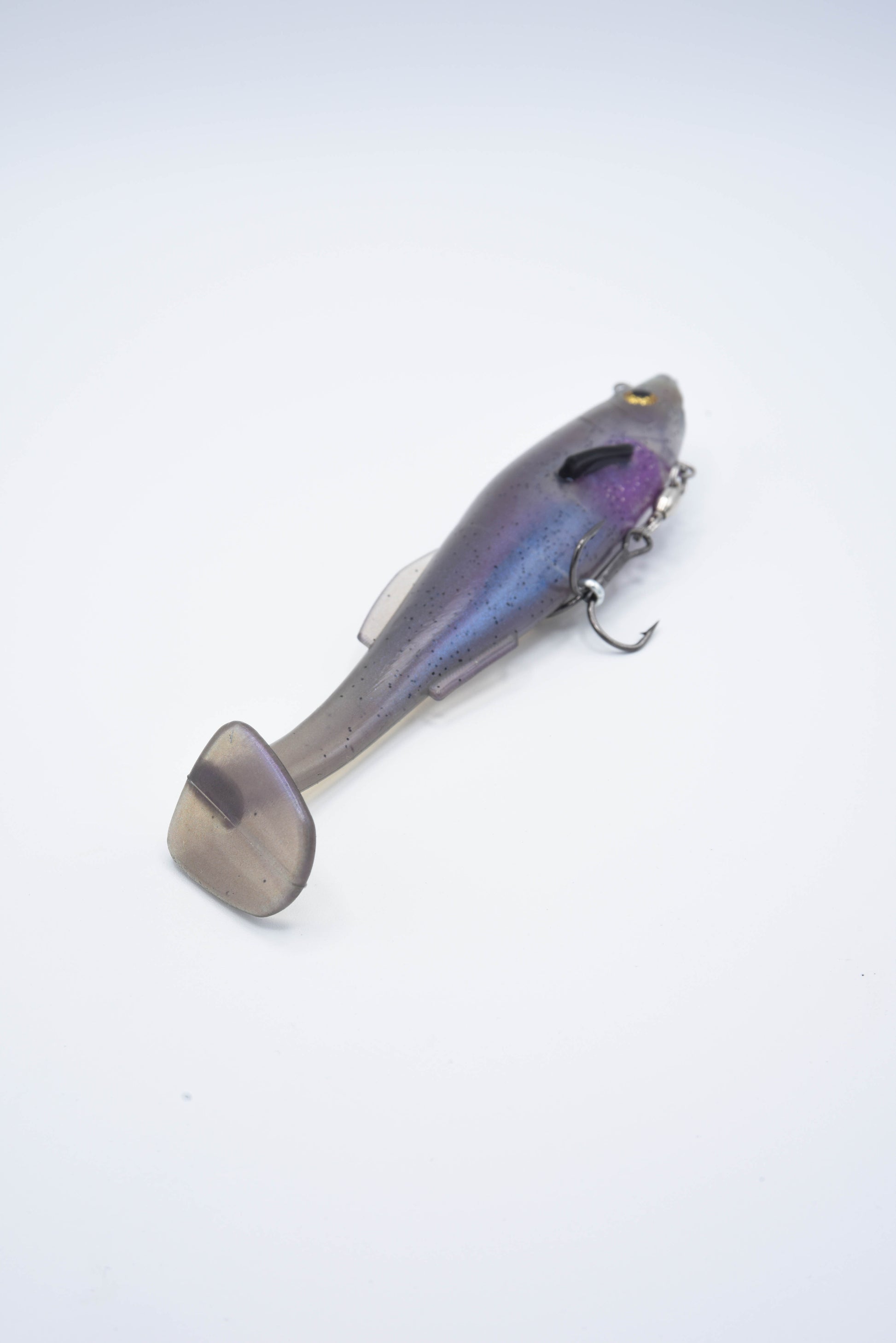 The Cutt Throat Shad is built to get big bites. Designed with a wire-through harness and belly-rigged treble setup, this bait delivers rock-solid hooksets without sacrificing lifelike action. Its wide thumping tail kicks hard during slow retrieves, making it deadly for pressured bass, pike, and other big predators.